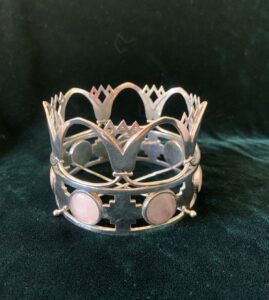 Morsiuskruunu on valmistettu hopeasta ja siinä on seitsemän kotimaista jalokiveä.